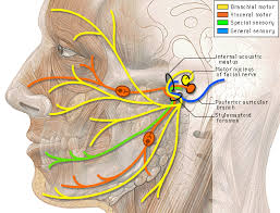 A Paralisia Facial é causada por transtornos que ocorrem no VII par de nervos cranianos (nervos faciais), composto pelo nervo facial propriamente dito (motor) e pelo nervo intermediário de Wrisberg. As aferências motoras são responsáveis pelos movimentos da face, enquanto as aferências sensitivas pela sensação gustativa dos 2/3 anteriores da língua.